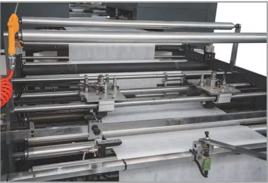 ● Rezací mechanizmus sa umiestni a prereže cez elektrické rezacie oko a dierovací mechanizmus sa umiestni a prerazí cez elektrické oko.
